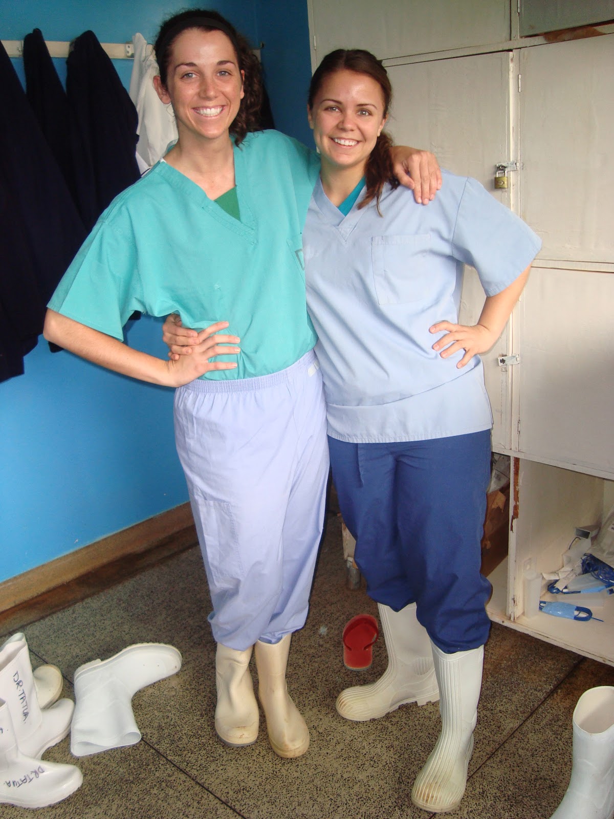 Ashlie and Brittany scrubbing up for the surgery theater! |