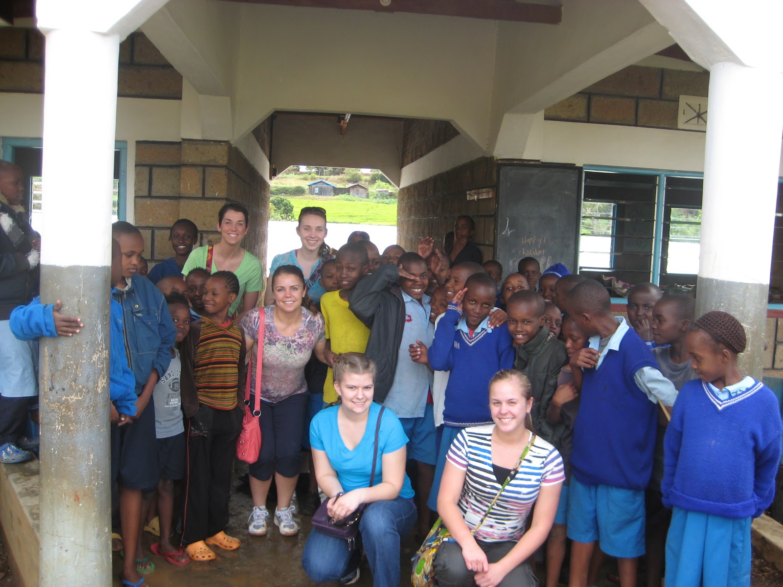 Today was another great day! We spent the day on the post-surgical ward with Brooke and Leah on the women's side and Carissa, Ashlie and Brittany on the men's side. From both experiences, it was observed that the poor living conditions contribute to a lot of preventable hospitalizations and we are learning a lot about the Kenyan culture through the nursing care provided. We have found many differences and some similarities between the nursing care they provide and the nursing care we provide. After another delicious lunch prepared by Douglas we packed into a Jurassic Park Van to visit some of Sharon's friends. Our first stop was Milimana School to deliver suitcases and backpacks to Erik, Festus and Dennis, three boys that are being sponsored to go to school through Sharon's church and friends. We got to spend time with the children at the school, take a tour of the school, play some football, and also sing and dance with them. The children are all so polite and could not get enough of touching our hair. We then piled into the van, all 15 of us, to take the boys to their home for break. The home that the boys live in was built through donations from the church in Chogoria and it was really neat to see. We also gave their mother a blanket to keep warm at night. It was extremely beneficial to witness how little they have and yet how happy they are.